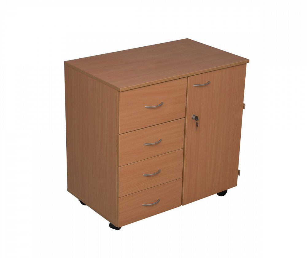Тумба на колесных опорах оснащается подставками под нитки и ящиками. Специальная мебель используется в школьном кабинете домоводства и технологии. В тумбе размещаются швейные принадлежности и фурнитура, малогабаритная швейная техника.