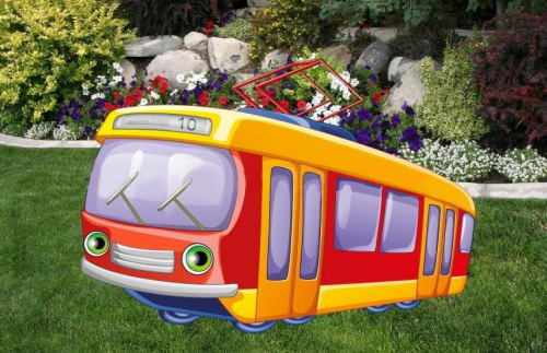 На фигуру нанесен полноцветный рисунок трамвая. Поверхность покрыта защитной пленкой. Устанавливается в грунт при помощи металлических стоек и крепежа (входят в комплект).