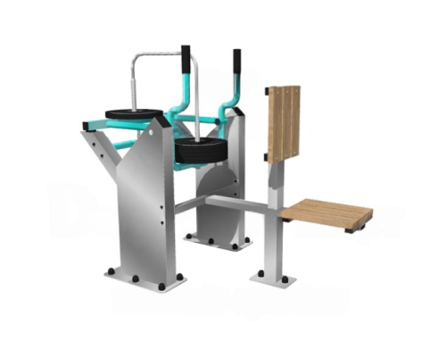 Давление оказывают обрезиненные диски из чугуна (5 шт.). Максимальный вес 60 кг. Рабочая поверхность сиденья и спинки деревянная. Металлокаркас крепится к закладной раме (с последующим вкапыванием и бетонированием) или к бетонному основанию (анкеры в комплекте). Метизы для соединений оцинкованы.
