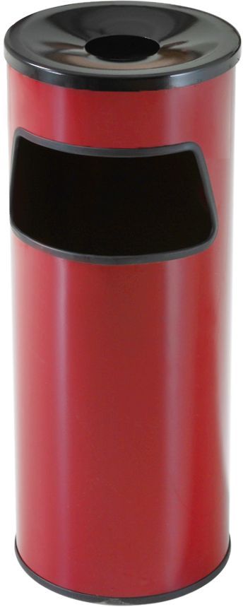 Урна для уличной территории оснащена круглым отверстием-пепельницей наверху и прямоугольным отверстием сбоку. Устойчивый корпус выполнен в форме цилиндра.