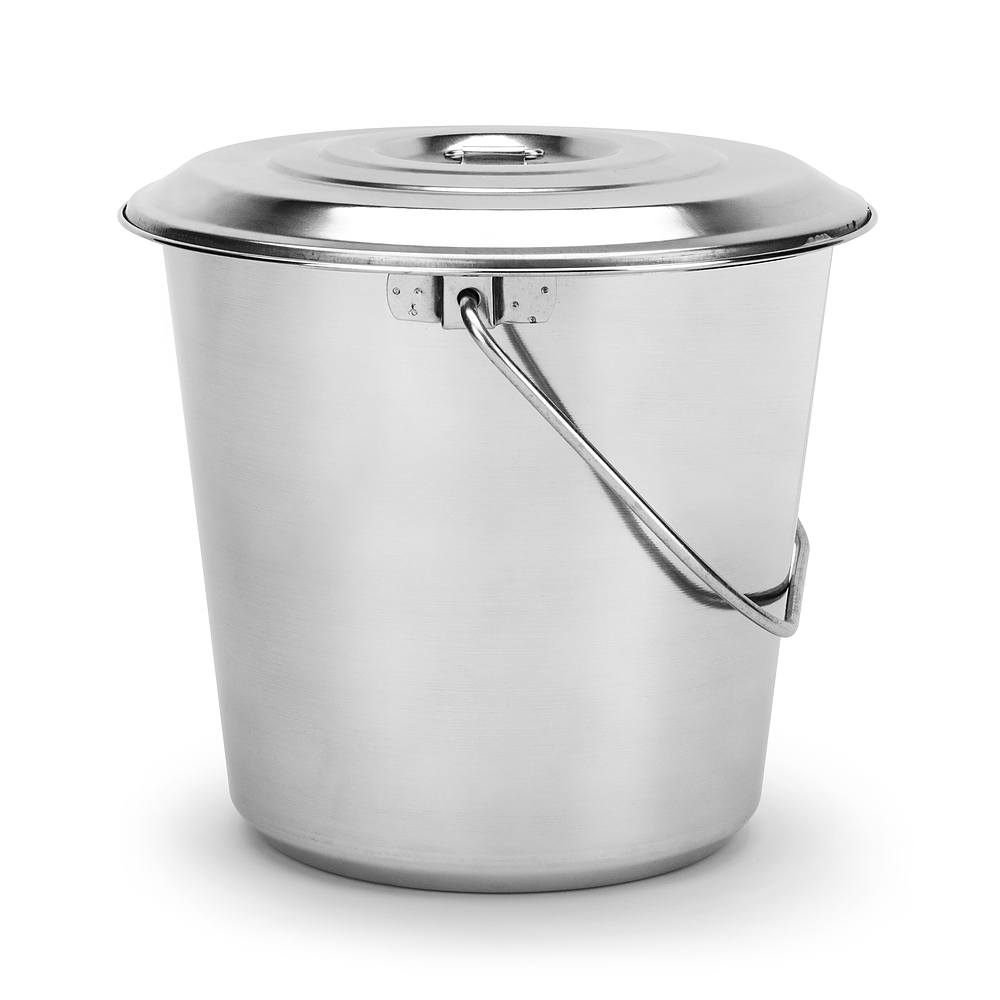 Ведро с крышкой, из нержавеющей стали не поддается коррозии и обладает высокой прочностью. Может использоваться в основном на кухне для кипячения, хранения и переноски продуктов и напитков. Рекомендуется для столовых школ и ДОУ.