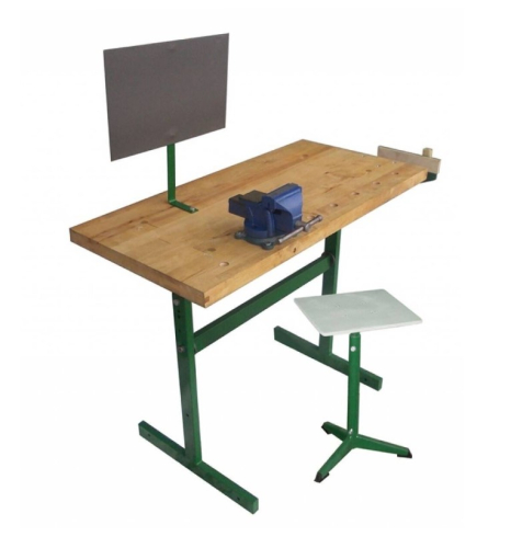 Основание поставляется в зеленом цвете. Предусматривается крючок для портфеля. Комбинированный стол используется учащимися 4-11 классов для сборочных, столярных, слесарных, монтажных и других видов работ.