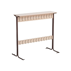 Вешалка рассчитана на 36 мест. Под вешалкой с полкой для головных уборов и крючками для одежды располагается стеллаж.