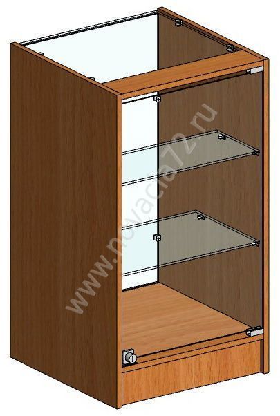 Витрина подходит для выставки. Каркас сборный. В корпусе 2 полки из стекла, глубиной 300 и 200 мм, выдерживающие до 7 кг. Прямоугольное основание дополнено цоколем. Фасад изделия и часть крышки стеклянные.