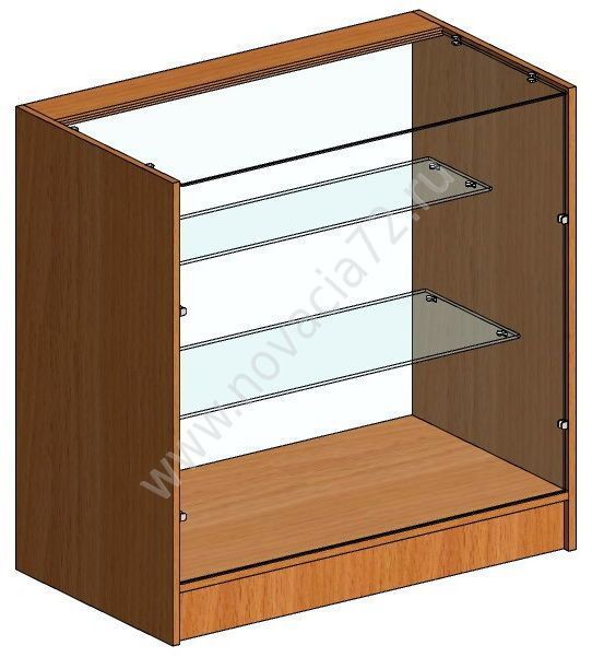 Сборный прилавок на прямоугольном основании дополнен цоколем. Крышка комбинированная, из стекла и ЛДСП. Фасад и 2 съемные полки, глубиной 300 мм и 200 мм, выполнены из стекла. Нагрузка на горизонтальные поверхности не должна превышать 7 кг.