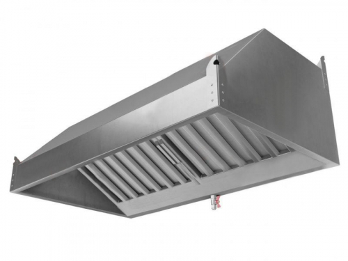 Вентиляционный зонт не дает копоти и неприятным запахам задержаться в помещении. Крепится к стене. Высота нижней части корпуса над полом 1,9-2 м. Воздух выводится через врезку, ее величина обговаривается дополнительно.