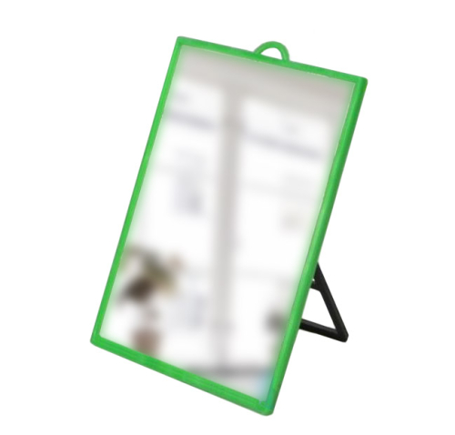 Данное изделие не разбивается, не раскалывается, поверхность устойчива к царапинам. Степень наклона зеркала прямоугольной формы регулируется при помощи подставки с упругой ножкой.