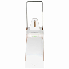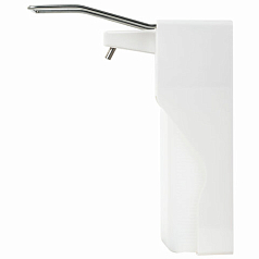 Дозатор для жидкого мыла с локтевым приводом комплектуется дополнительно насосом для дезинфицирующих средств. Оснащен замком.