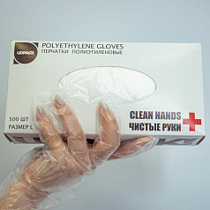 Перчатки полиэтиленовые одноразовые 250 пар (500 шт.) размер L, коробка-диспенсер, плотные