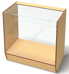 Корпус вращается над круглой стационарной опорой. Каждая из сторон стойки оснащается 3-мя прозрачными отделениями с бортиками. Стеллаж изготовлен из ЛДСП, верхние края боковых панелей закругляются.