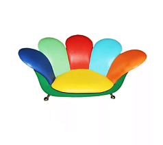 Яркий диванчик, выполненный в форме бутона цветка может устанавливаться в игровой комнате, коридоре и холле детского сада.