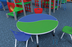 Компактный стол "Капля" размещается в ДОУ. Может сочетаться с аналогичными столами, компактно организуя пространство для работы в группе.