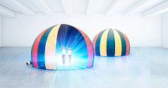 - Magic Dome. Высота 3,5 м, диаметр 5 м. Каркас дольше держит форму при открытой двери. За 1 раз детский коллектив заходит полностью, без деления на подгруппы.