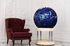Макет небесной сферы с проекцией звезд и созвездий используется в кабинете астрономии. Разборная модель устанавливается на подставку. В центр макета помещена модель Земли (ось Земли и ось мира совпадают).
