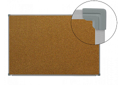 Прямоугольное пробковое поле обрамляется профилем из металла. Закругленные углы прикрываются пластиковыми заглушками.