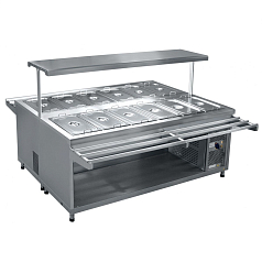 Сюда входят прилавки для холодных закусок, блюд, подогрева тарелок, модули линий раздач, витрины.