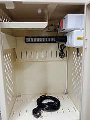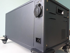 Тележка служит для компактного хранения и подзарядки ноутбуков. Конструкция оснащена 21 розеткой (220-230 В). Потребляемая мощность 1,3 кВт/ч.
